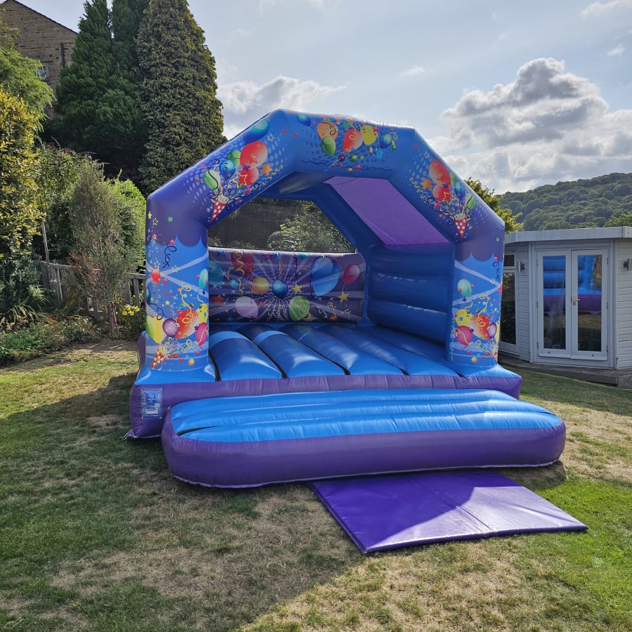 , delivering our 12ft x 16ft party themed bouncy castle to homes, gardens, community halls and event venues across West Yorkshire.