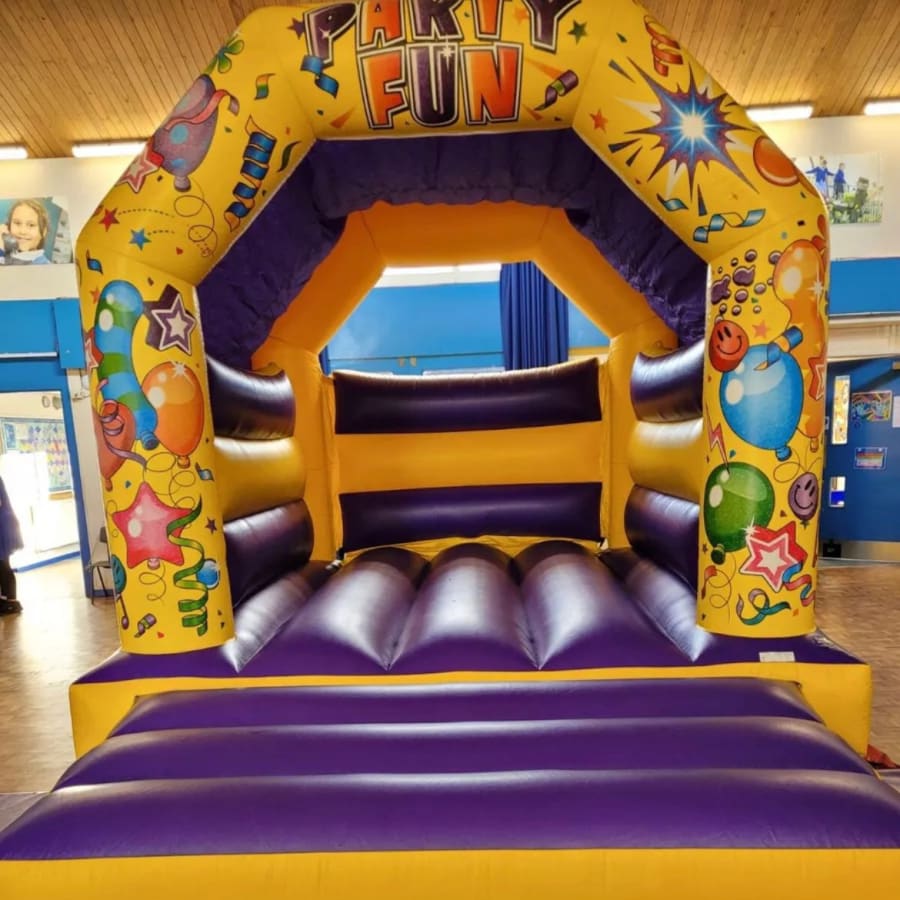 Add bold colour and energy to your event with our party bouncy castle hire in Halifax, featuring a vibrant yellow and purple party fun bouncy castle 🎉 Perfect for birthdays, garden parties, school events and family celebrations, this inflatable creates a lively centrepiece that instantly sets the tone for fun.