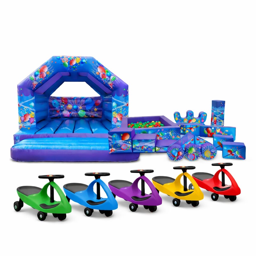 Our Indoor Party Bounce, Play & Ride Package is ideal for toddlers and young children, combining a party-themed bouncy castle, matching soft play and ball pool, plus 5 Didi Cars for added fun. Perfect for indoor parties, community halls, and soft play events, this package is a popular choice for family celebrations across Huddersfield, Halifax, and West Yorkshire.